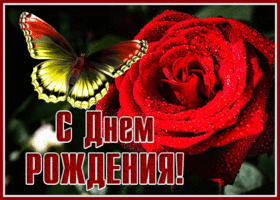 Картинка с днем рождения женщине с нежной розой и бабочкой