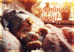 Картинка спокойной ночи с очаровательным рыжим котом